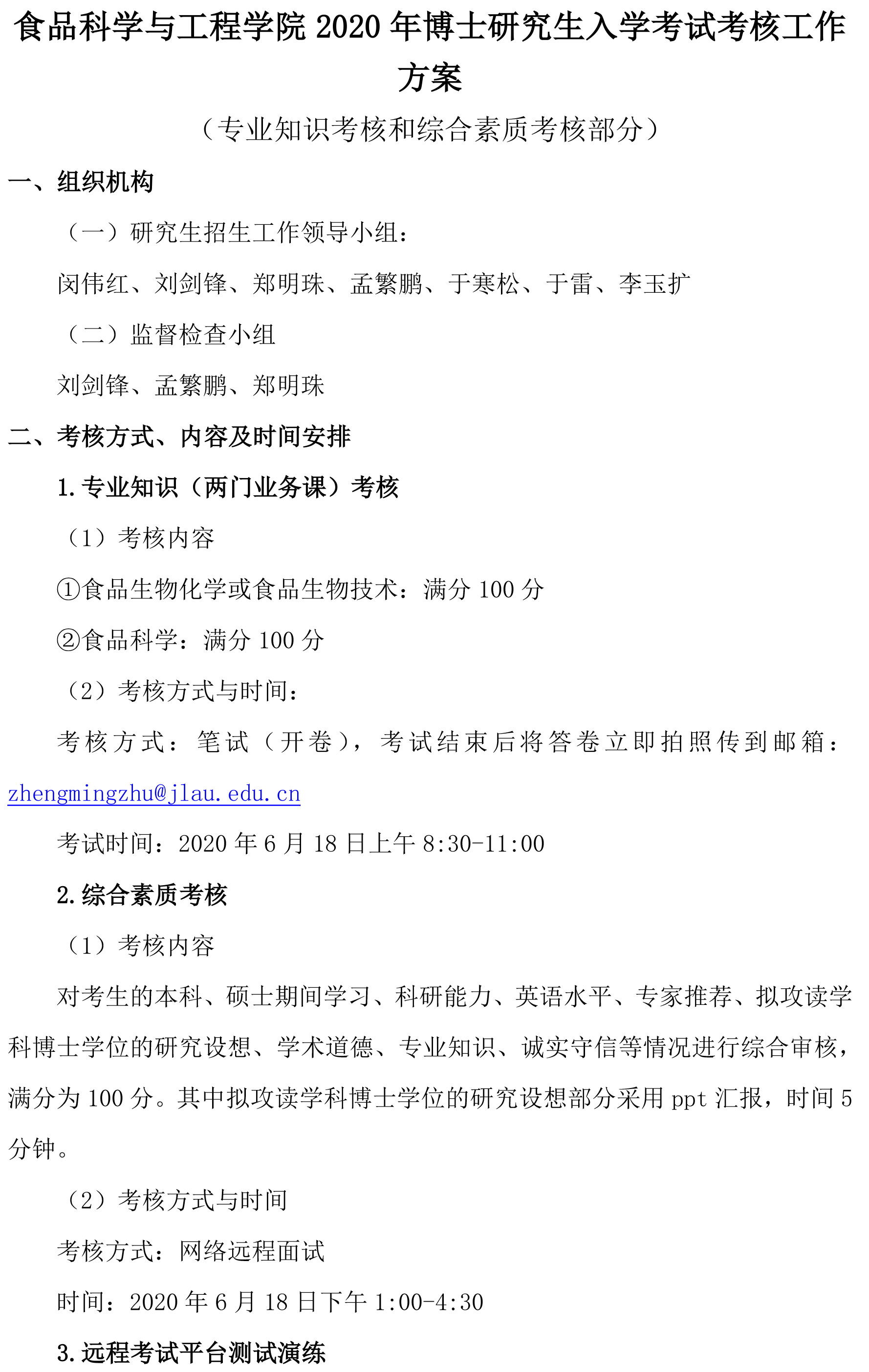 食品科学与工程学院2020年博士生入学考试考核方案
