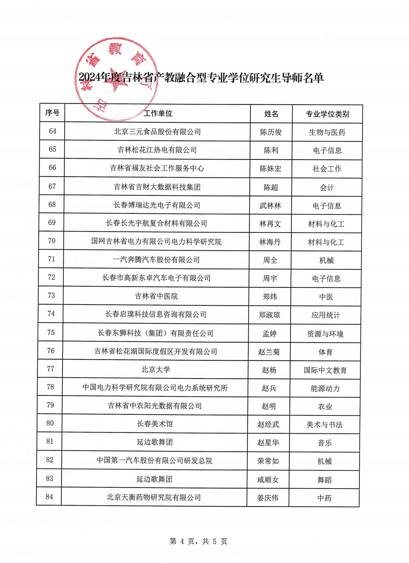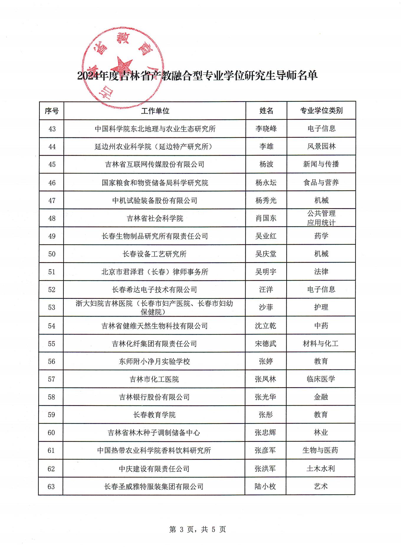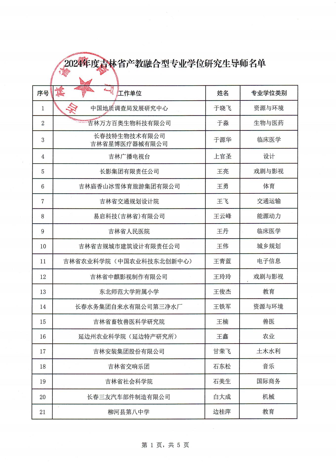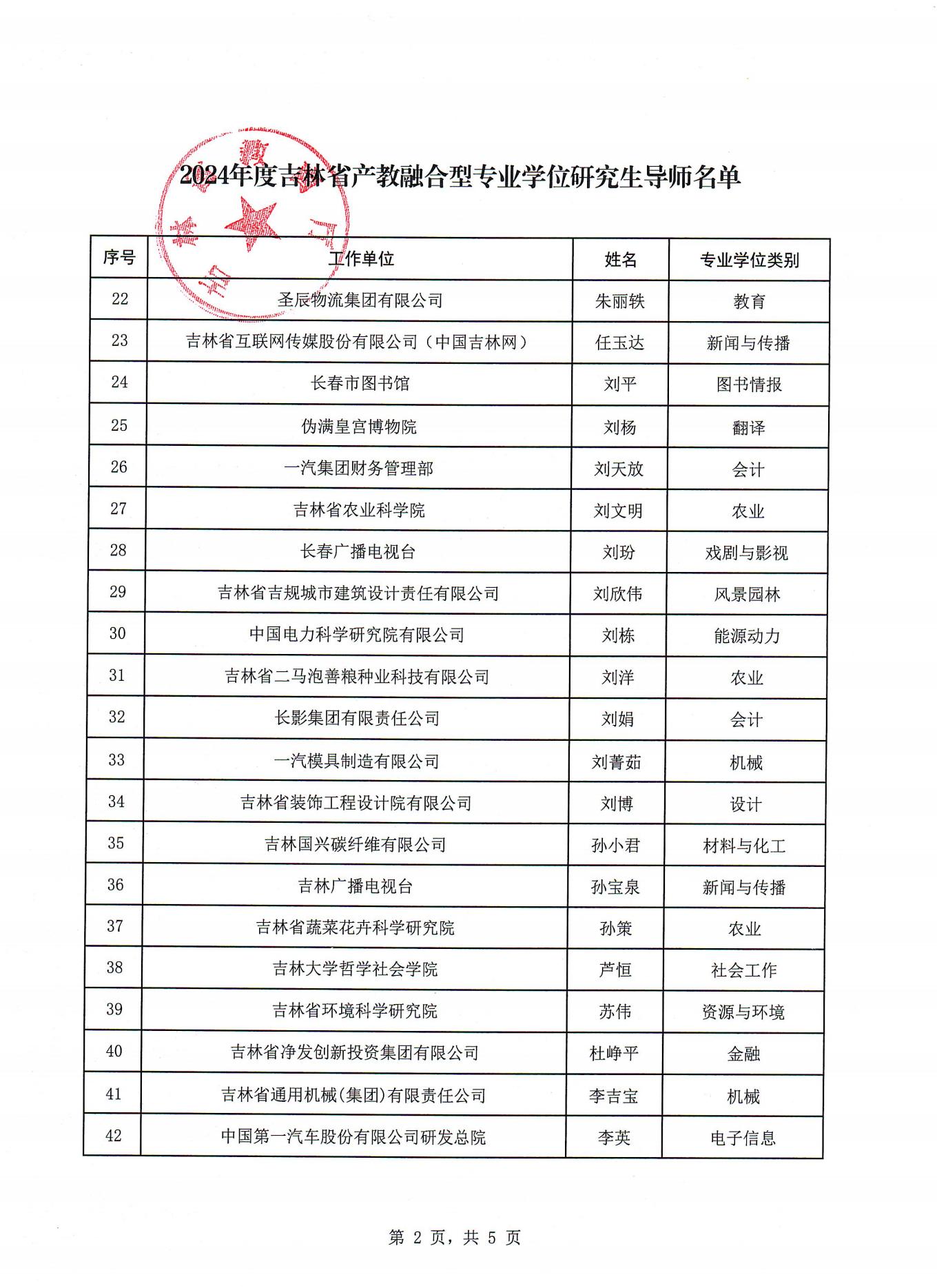 附件:2024年度吉林省产教融合型专业学位研究生导师名单