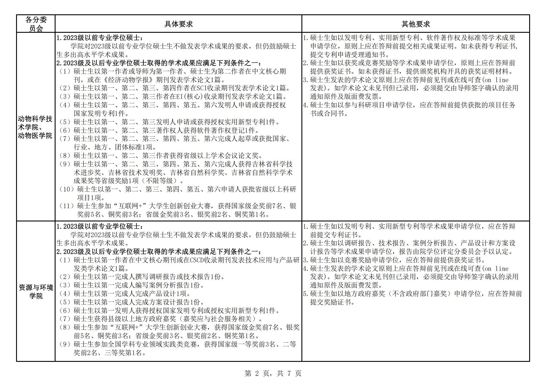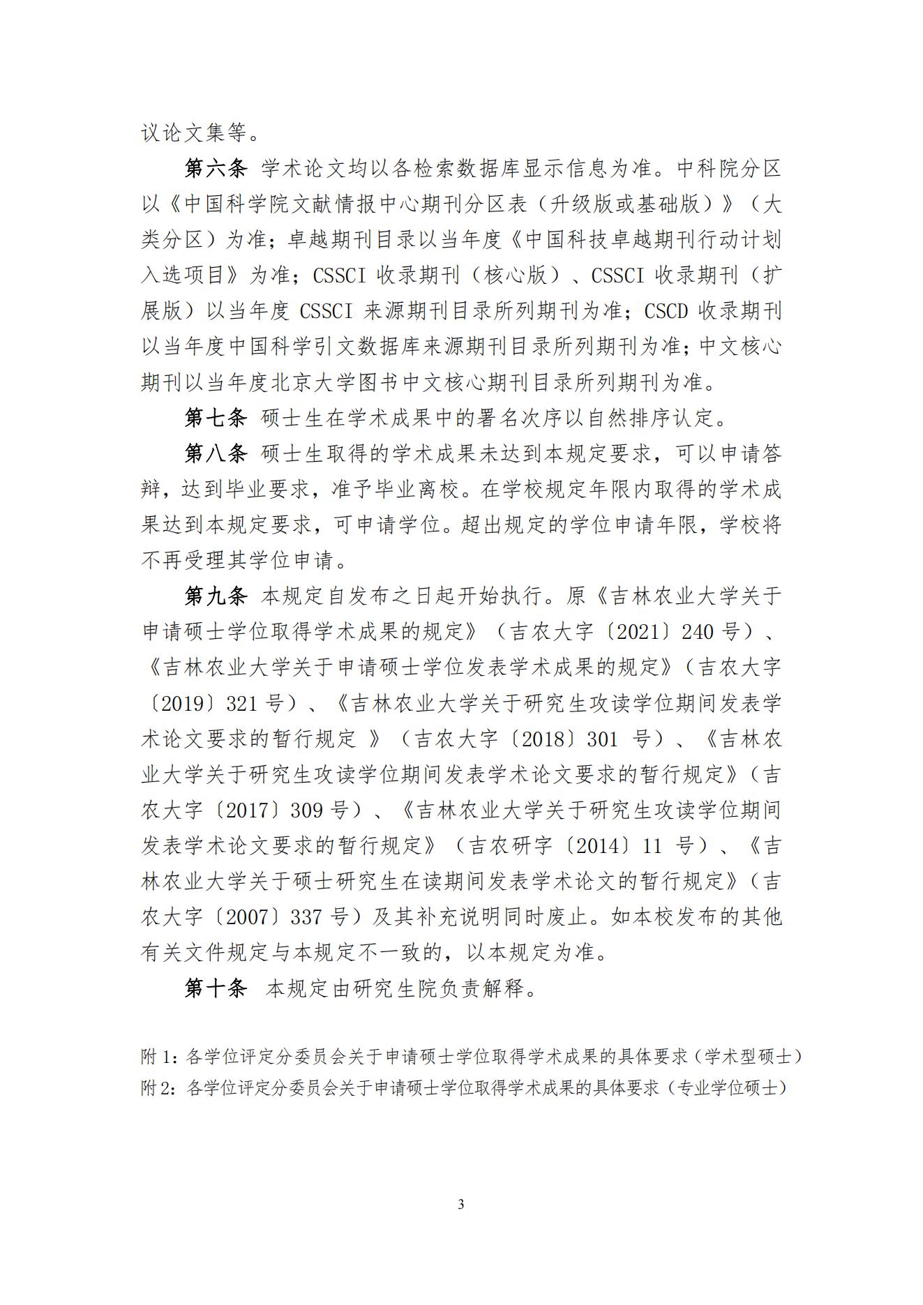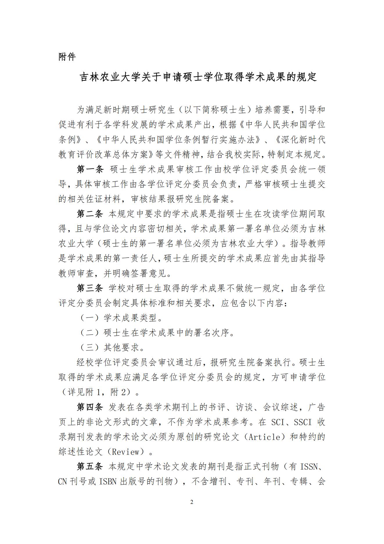 吉林农业大学关于申请硕士学位取得学术成果的规定--2023级及以前硕士执行