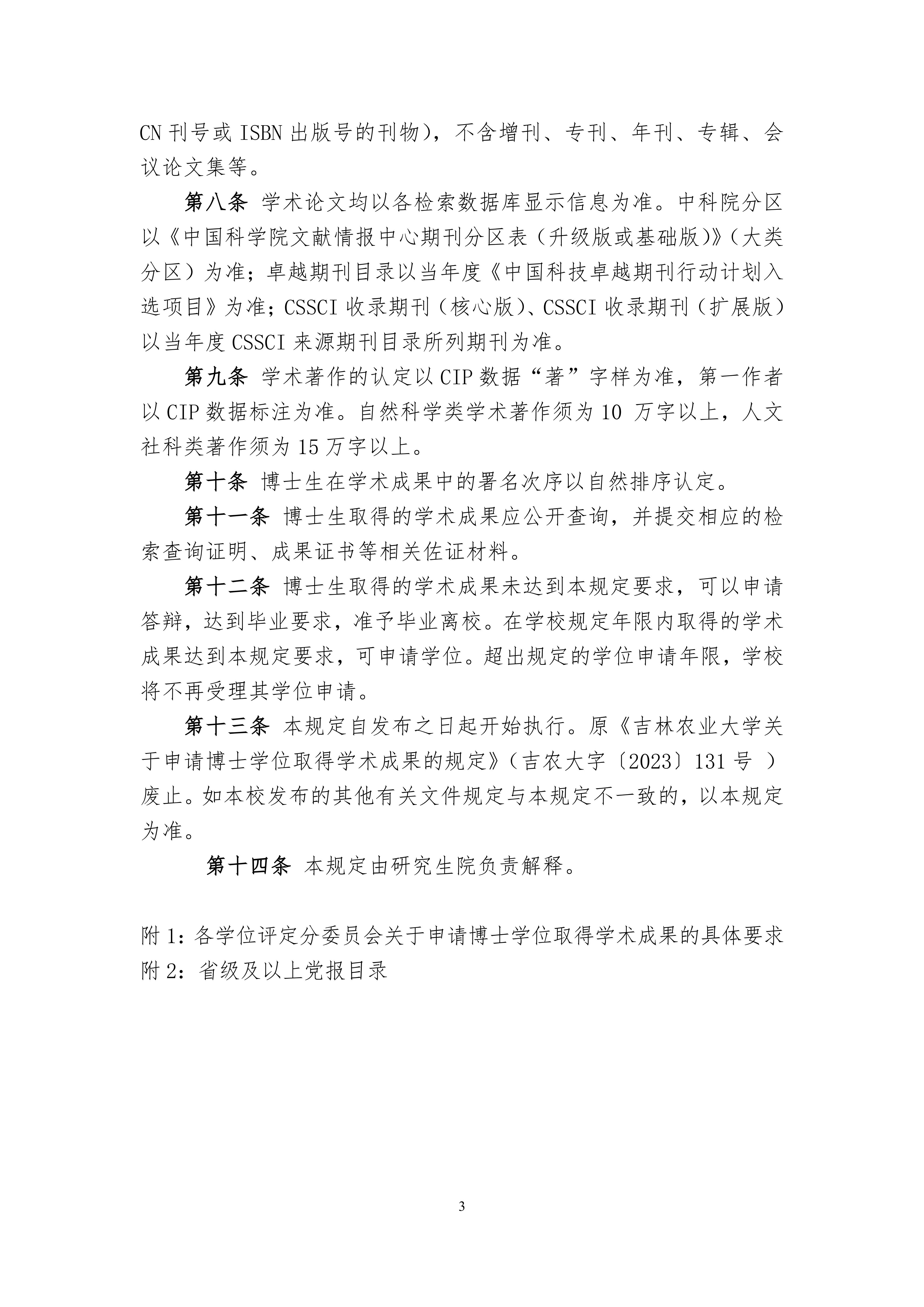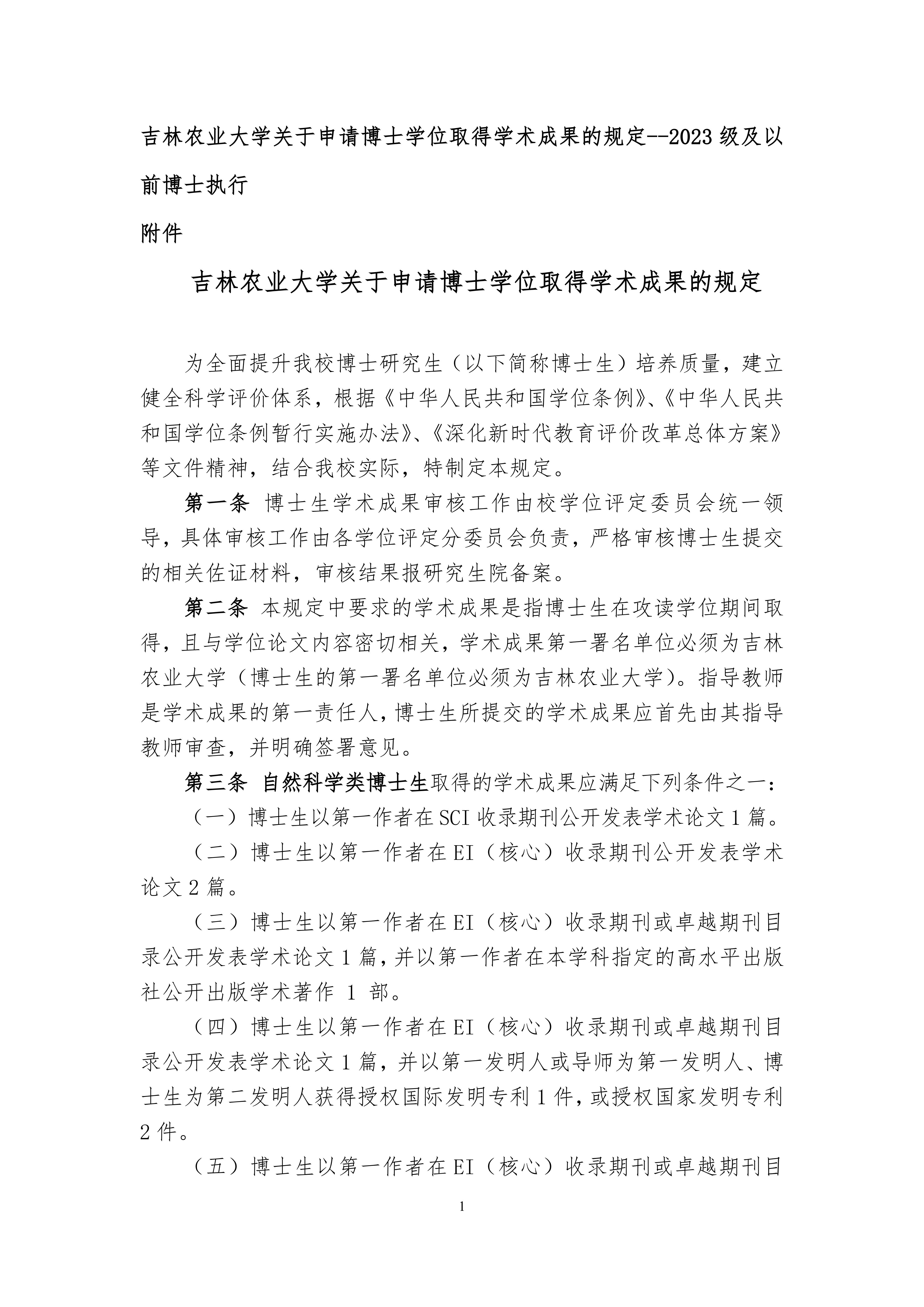 吉林农业大学关于申请博士学位取得学术成果的规定--2023级及以前博士执行